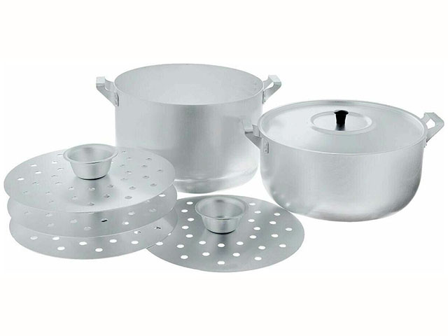 Мантоварка представляет собой многоярусную кастрюлю для приготовления еды на пару: в нижней секции кипит вода, на сетках готовятся манты или другие блюда из теста с начинкой. Такая пароварка подойдет и сторонникам правильного питания, ведь блюда в ней готовятся без масла и сохраняют максимум полезных веществ. Мантоварки укомплектованы разным количеством съемных дисков и сеток и имеют различный объем: чем больше ярусов, тем больше мант можно готовить одновременно. Алюминиевая мантоварка используется на газовых и электрических плитах.