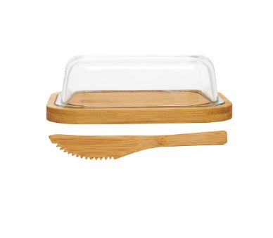 Масленка 370мл с крышкой и ножом, бамбук,TM Appetite
