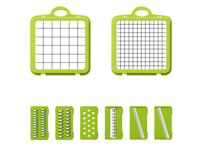 Ручная овощерезка поможет существенно сэкономить время, потраченное на приготовление обеда, праздничного стола или сезонных заготовок. Один компактный кухонный мультислайсер легко и быстро режет овощи, фрукты, сыры на ровные кубики, ломтики или слайсы. В комплекте 8 насадок: крупная и мелкая шинковка, терки двух видов для идеальной соломки, терка для рассыпчатой цедры, лезвия для нарезки ровных и гофрированных слайсов. Дополнительно в набор включены овощечистка, разделитель для яиц, сетка для мытья и сушки овощей и фруктов, вместительный контейнер из пищевого пластика. Эргономичная ручка и ножки с антискользящим покрытием делают использование измельчителя абсолютно безопасным. Все компоненты удобно и понятно собираются.