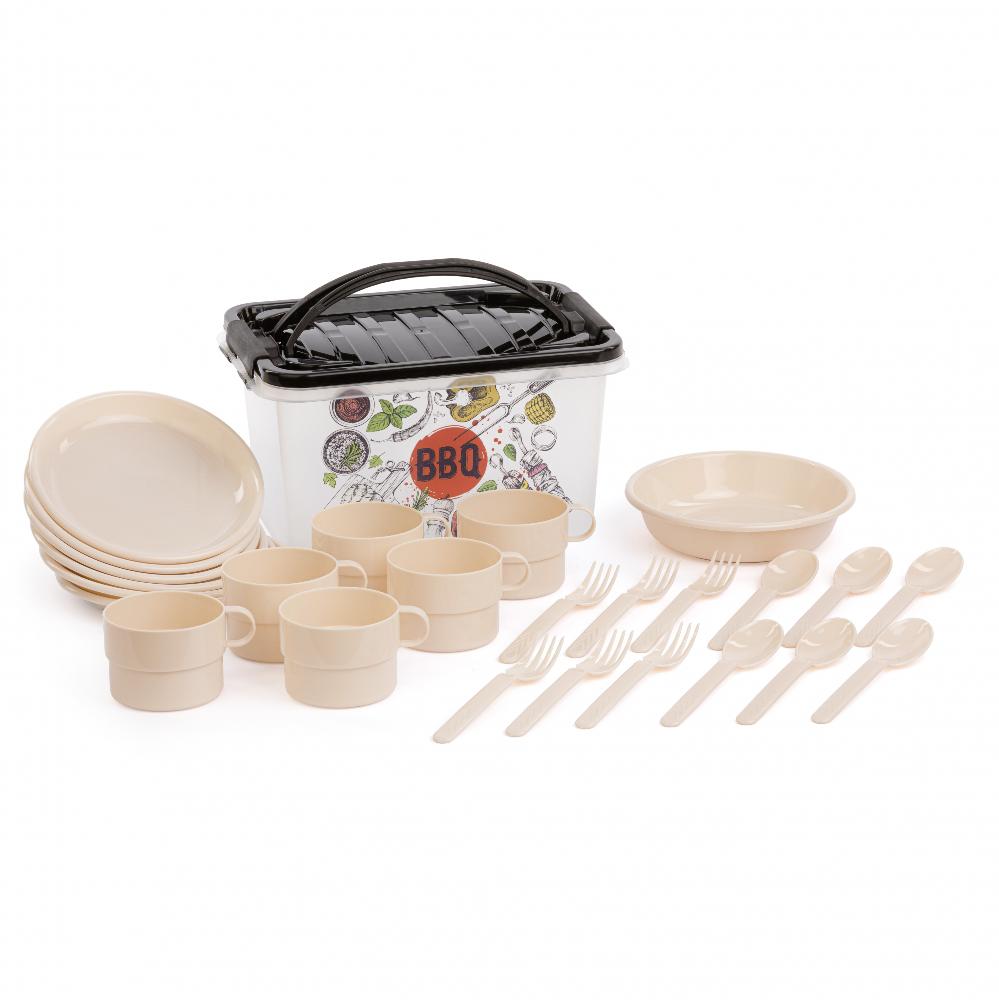 Набор для пикника "Гурман" выполнен из безопасного пищевого пластика. Предназначен для сервировки стола на природе на 6 персон. В комплект входит: Контейнер для пикника, 6 кружек по 300 мл., 6 тарелок, 6 комплектов столовых приборов.