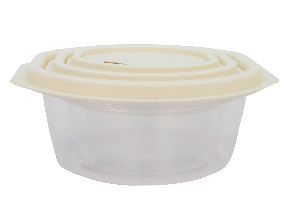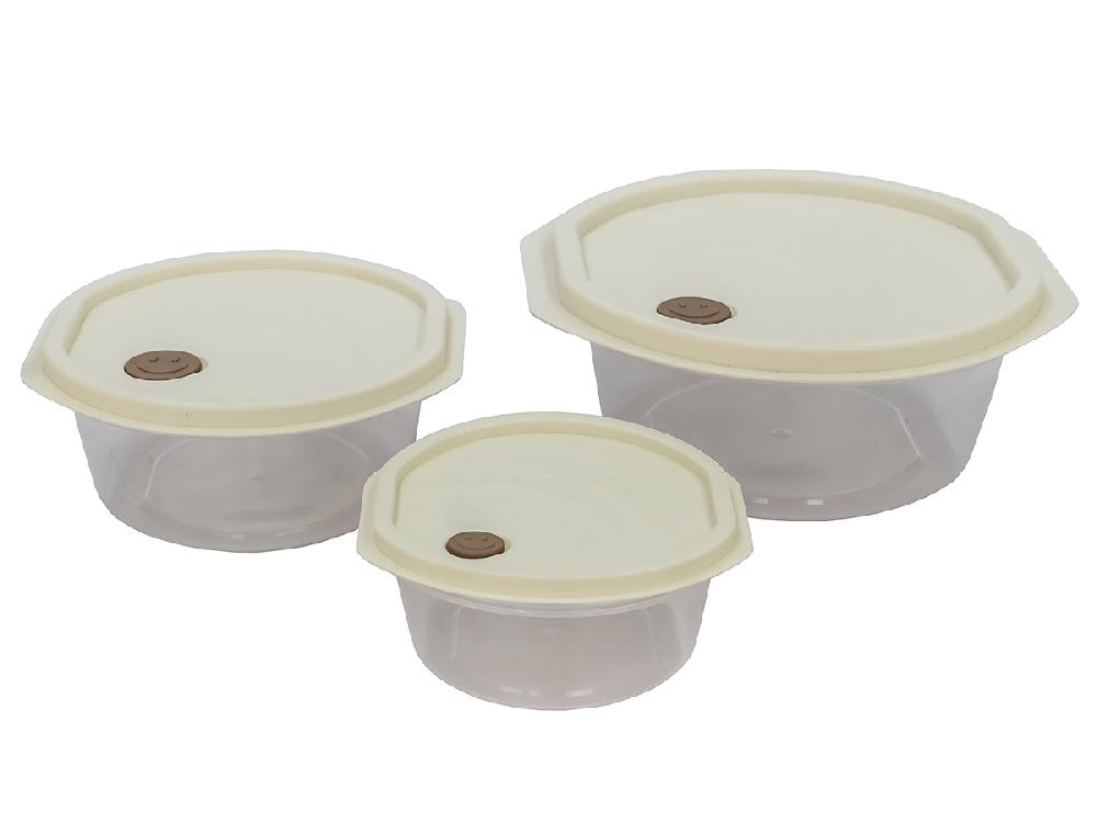 Набор из 3-х пищевых контейнеров с крышкой от 0.5 до 1.6 л, круглые