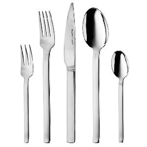 Этот набор включает в себя 6 наборов из 5 предметов: столовой вилки, столового ножа, столовой ложки, а также вилки для пирожных и кофейной ложки.
