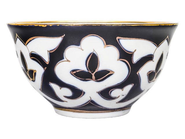 Главный элемент орнамента "пахты" – цветок хлопка. Всем знакомая бело-голубая посуда с позолотой, ставшая символом восточной кухни. Этот фарфор ручной работы узбекских мастеров выглядит очень нарядно и подходит как для праздничного стола, так и для повседневного использования.