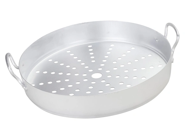 Сетка "Калитва" выполнена из матового алюминия и предназначена для мантоварки объемом 13 л. Изделие имеет отверстия и оснащено удобными ручками.