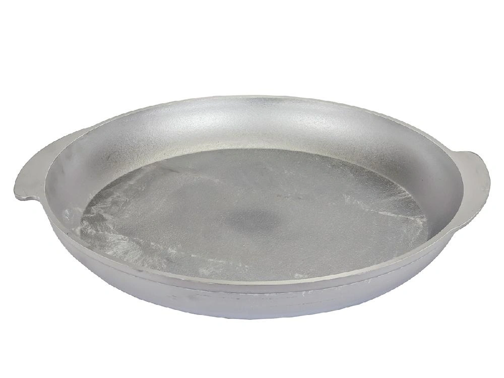 Высокая теплоемкость и оптимальная для распределения температуры форма сковороды позволяют использовать его как на специальной печке, так и на газовой и электрической плите, на мангале или на треноге над костром.