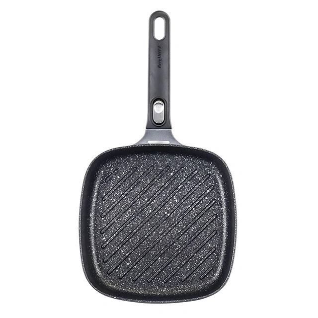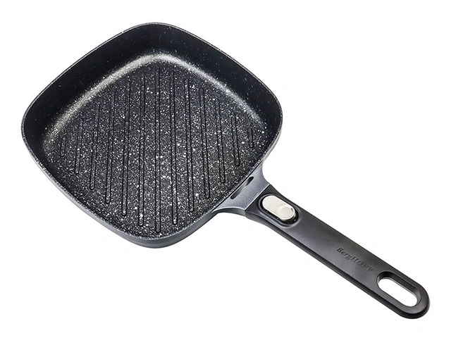 Специализированная антипригарная гриль-сковорода из литого алюминия с рифленым дном, продукция бельгийской компании BergHOFF. В комплекте съемная ручка. Длина стороны 24 см, общая длина с ручкой 45 см, объем 2,3 л, высота 10 см, вес 1,7 кг. Артикул товара 2307306. Купить в Москве сковороду-гриль BergHOFF Gem, 24 см, можно в разделе “Кухонная посуда”.