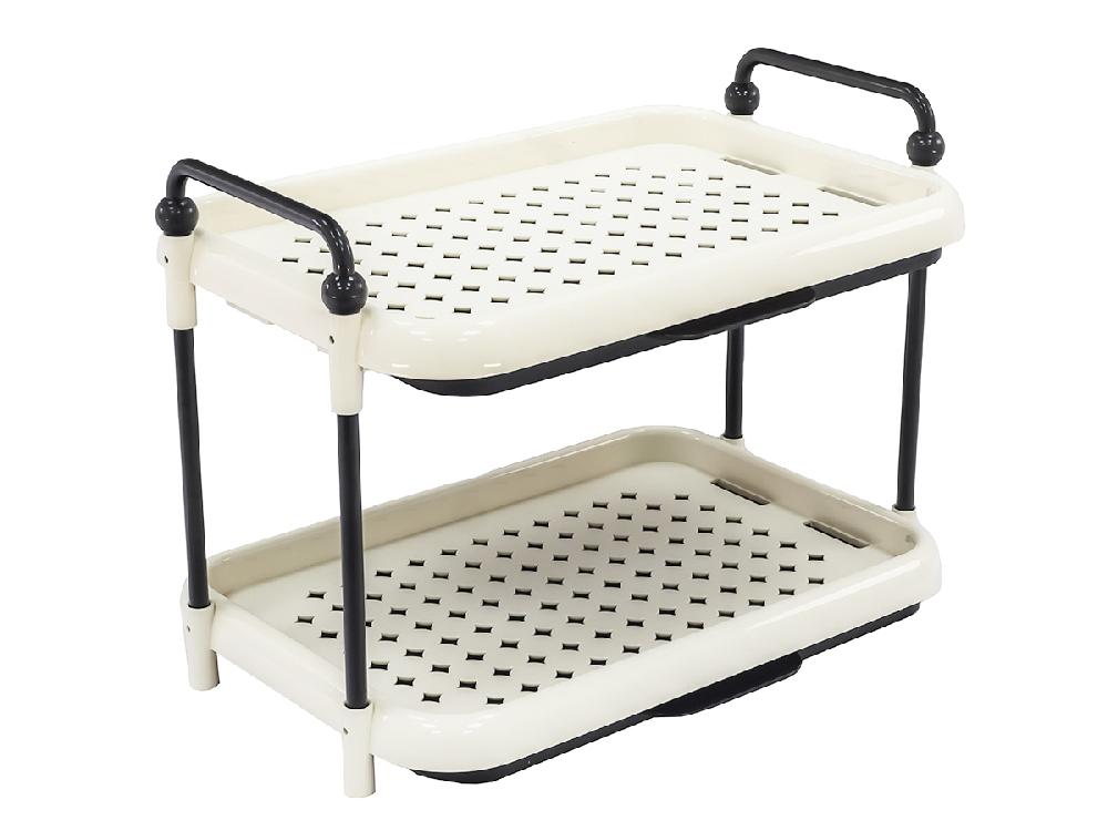 Этажерка универсальная на ножках с поддоном, прямоугольная с ручками, 2 яруса, 37х26х28 см, Plover