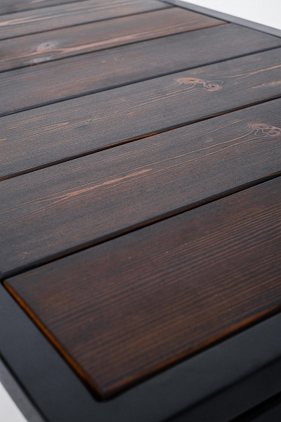Столешница выполнена из экстра-гладкой сосны. Дерево покрыто специальным маслом, изготовленным в Европе, абсолютно безвредным для здоровья, которое укрепляет дерево, обеспечивает защиту от влаги, плесени, прямого воздействия ультрафиолета и подчеркивает его структуру.