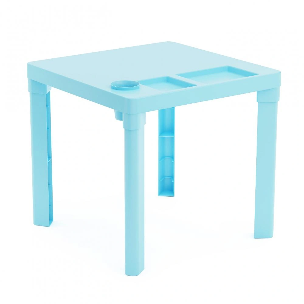 Детский стол – хорошее решение для обстановки детской комнаты. Сидя за столом, ребенок сможет комфортно проводить время за своим любимым занятием. Изделие изготовлено безвредного пластика высокого качества. Отсутствие острых углов обеспечивает безопасную эксплуатацию изделия. Ножки отсоединяются, что очень удобно при перевозке. Столешница оборудована тремя выемками под стакан и канцелярию. Это позволит ребенку правильно организовать рабочее место и предотвратить скатывание ручек и карандашей. Цвет изделия создаст красочную атмосферу детской комнаты.