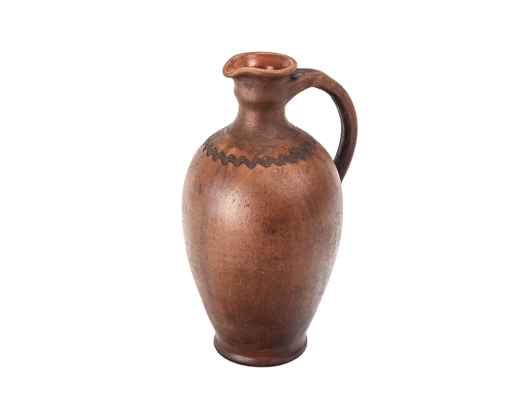 Кувшины мастер Альберт Сафеев делает из голубой глины вручную, на гончарном станке. Глазирует, трижды обжигает, покрывает воском, а еще - перед обжигом окунает каждый кувшин в коровье молоко. "Молочение" придает керамике насыщенный цвет и особую текстуру. Художник занимается изготовлением керамики много лет. На творчество его вдохновила яркая архитектура городов Средней Азии.