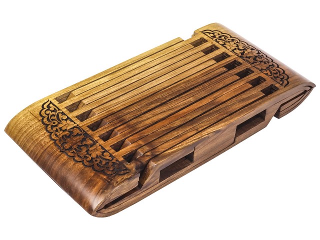 Подставка украшена резьбой: она должна выглядеть соответственно дорогим книгам, которые на них размещают. Но лаух - это не только красивая вещь, но и довольно сложная конструкция, детали которой соединяются без гвоздей, клея или шарниров. Изготовление лауха - высший пилотаж в искусстве резчика.
