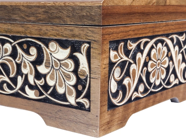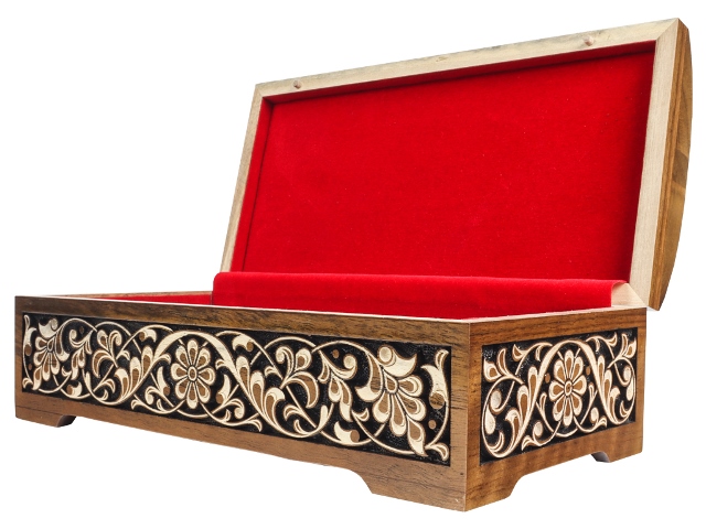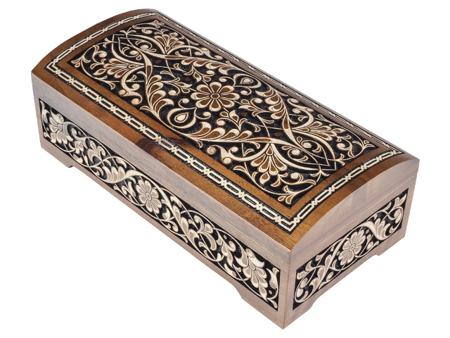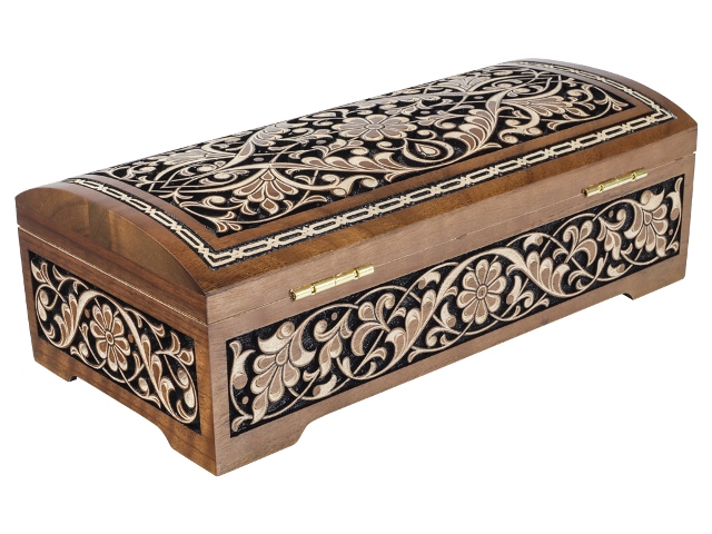 Деревянная шкатулка ручной работы выполнена из благородного сорта грецкого ореха. Древисину сушат от 5 до 6 лет при определенных условиях. Выполнена узбекским мастером Шухратом Ахмедназаровым в технике национальной резьбы по дереву - "ислими" (с растительным орнаментом). Отличный вариант памятного подарка для всех, по любому поводу.