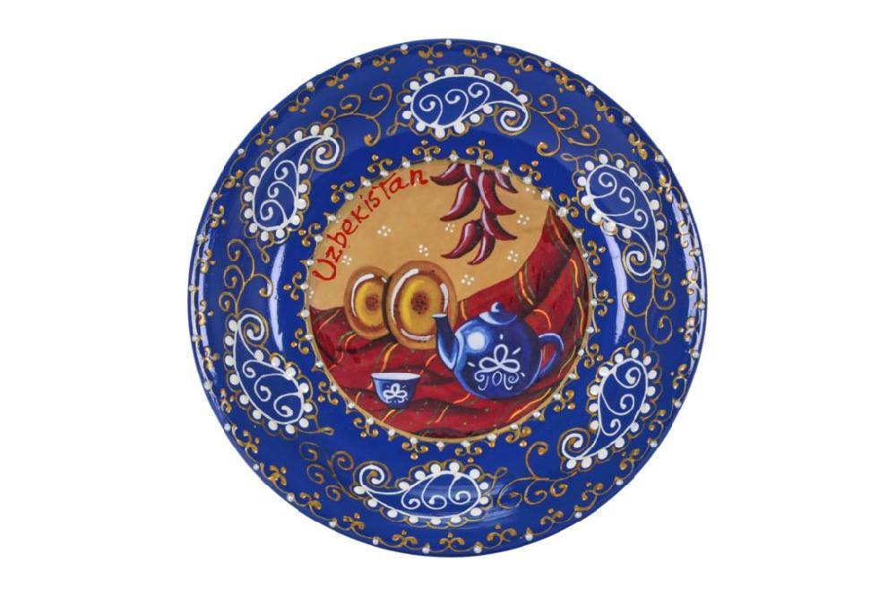 На тарелках с ручной росписью изображены достопримечательности Узбекистана и национальные орнаменты. Такая тарелка украсит интерьер квартиры, дома или ресторана и станет отличным подарком.