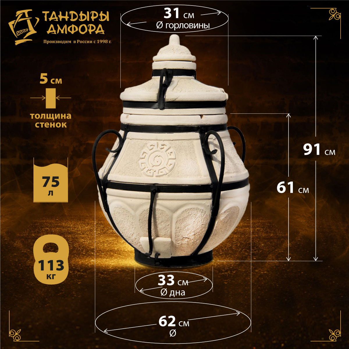 Толщина стенки - 5 см (+/-0,5см)