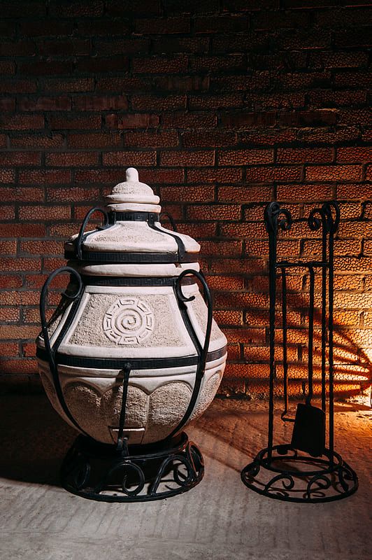 Тандыр — уличная печь из экологически чистого огнеупорного материала, глины с добавками. Керамический корпус усилен кованым каркасом. Процесс приготовления пищи осуществляется за счет мощной теплоотдачи стен, продукты прожариваются быстро и равномерно.