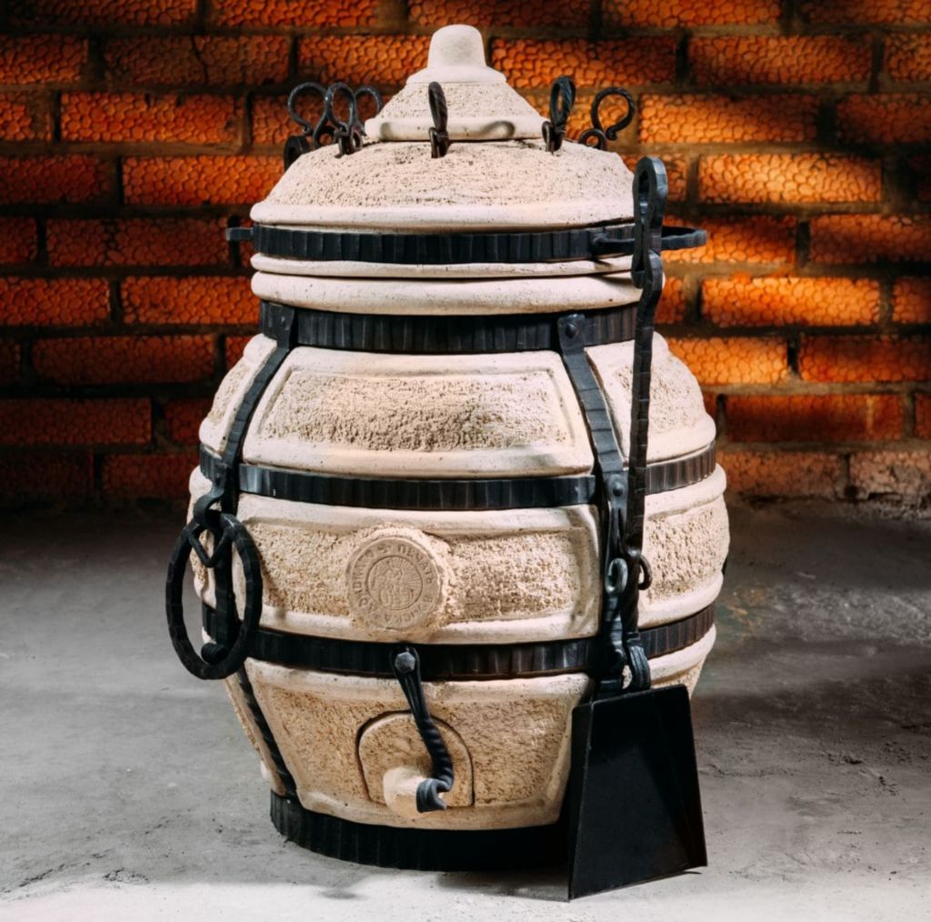 Тандыр — уличная печь из экологически чистого огнеупорного материала, глины с добавками. Керамический корпус усилен кованым каркасом. Процесс приготовления пищи осуществляется за счет мощной теплоотдачи стен, продукты прожариваются быстро и равномерно.