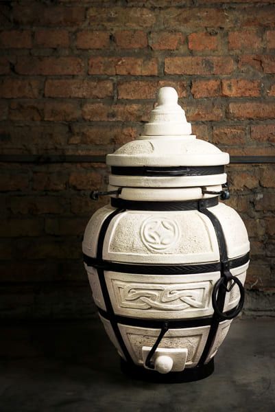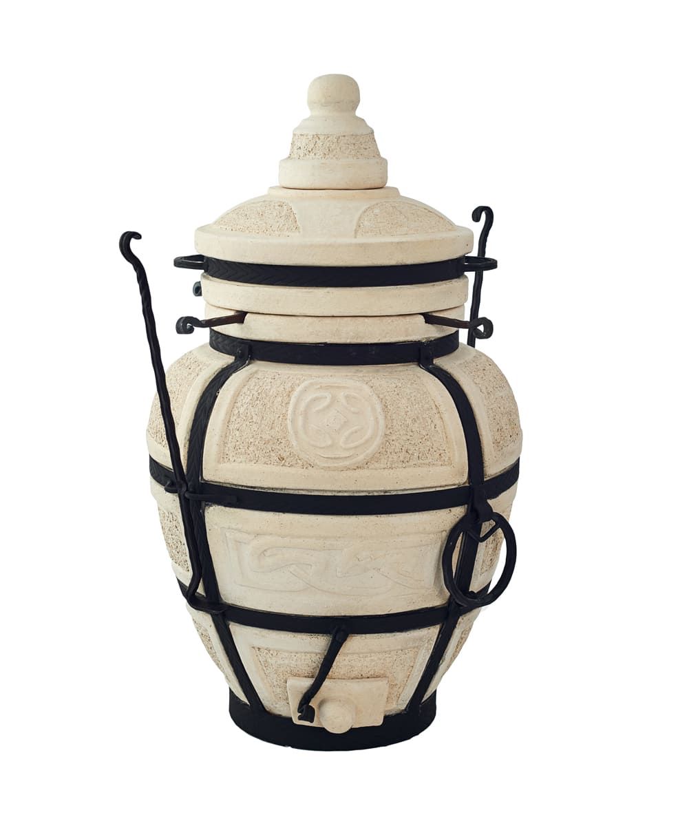 Тандыр — уличная печь из экологически чистого огнеупорного материала, глины с добавками. Керамический корпус усилен кованым каркасом. Процесс приготовления пищи осуществляется за счет мощной теплоотдачи стен, продукты прожариваются быстро и равномерно.