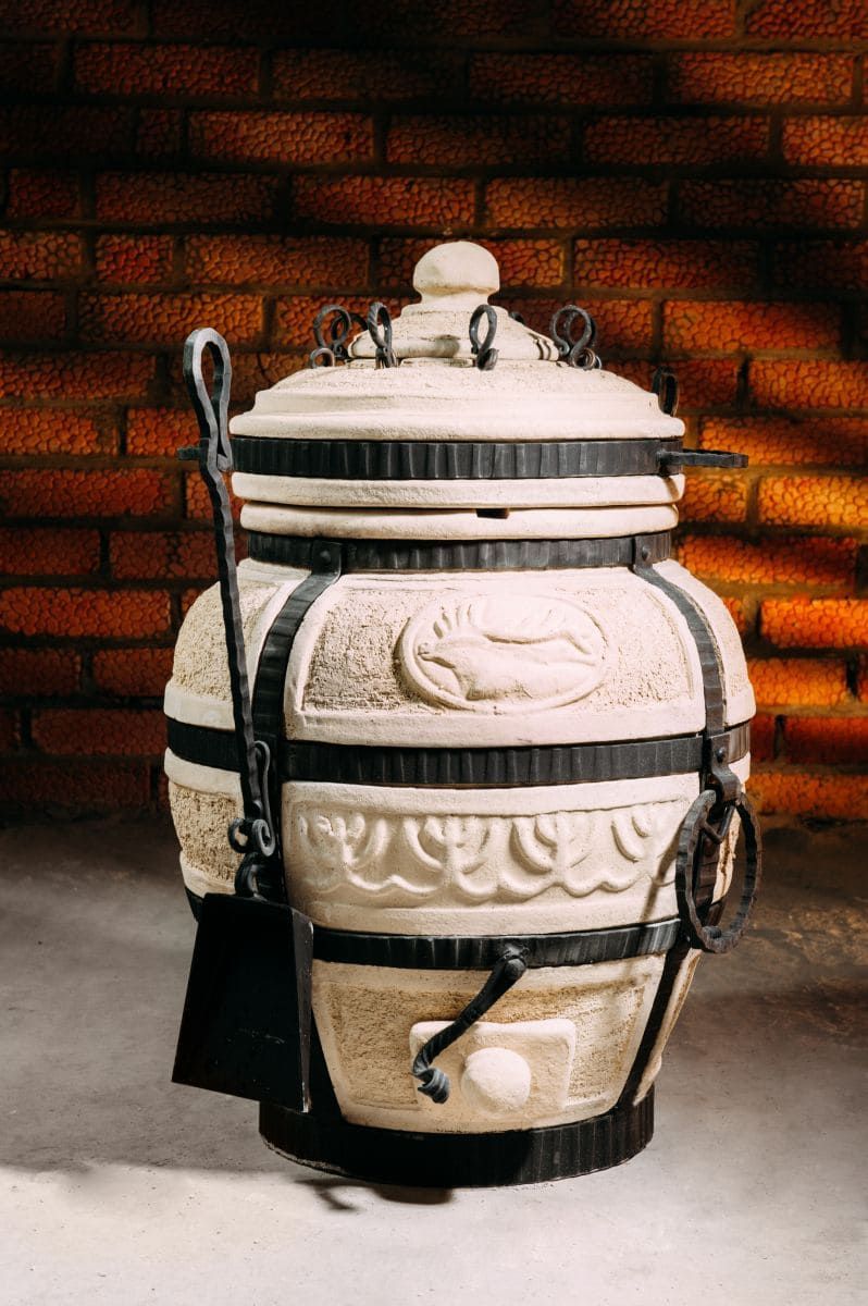 Тандыр — уличная печь из экологически чистого огнеупорного материала, глины с добавками. Керамический корпус усилен кованым каркасом. Процесс приготовления пищи осуществляется за счет мощной теплоотдачи стен, продукты прожариваются быстро и равномерно.