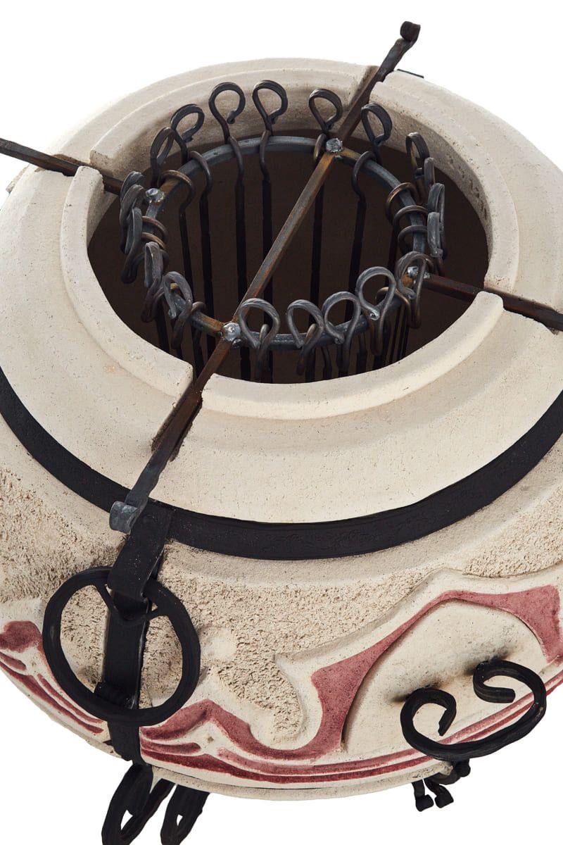 Тандыр — уличная печь из экологически чистого огнеупорного материала, глины с добавками. Керамический корпус усилен кованым каркасом. Процесс приготовления пищи осуществляется за счет мощной теплоотдачи стен, продукты прожариваются быстро и равномерно.