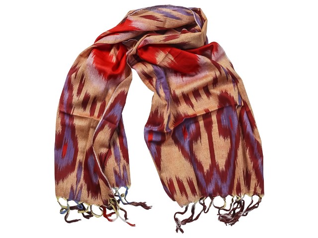 Шарф из узбекской традиционной ткани адрас (100% хлопок) с узором икат.
