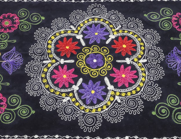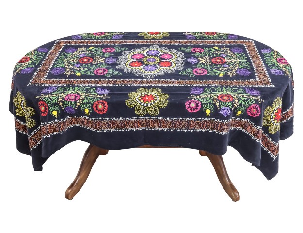Скатерть с традиционной узбекской вышивкой "Сюзане", вышивка выполнена вискозно-шелковыми нитями.В концепции узора, вышитого на полотне, лежит растительная тема, в виде цветущего сада.