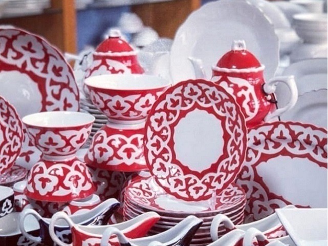 В наличии красная “Пахта” с позолотой и без: тарелки, ляганы, чайники, чашки, пиалы, соусники, сахарницы. Из отдельных предметов вы сможете составить свой собственный сервиз. Посуда подходит и для праздничного стола, и для повседневного использования. Обратите внимание на чайные наборы и столовые сервизы, каждый из них - отличный подарок к любому празднику.